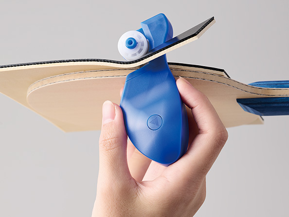 QLOPが手がける卓球専用ラバーカッターは、ギザギザになったり、ラケットの形状通りにカットできなかったり、意外と難しいラバーのカットを誰でも「簡単に・きれいに・安全に」行うことができるアイテム。ラバーを切る際にカッターがラケット本体に触れない設計で、卓球専門店のスタッフのような「プロ仕様」のカットを実現した。