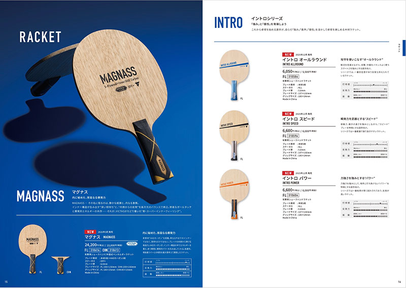 また、近年人気が高まっている粘着ラバー、粘着テンションラバーとの相性を最大限考慮して開発された特殊素材ブレード『マグナス』もリリース。新素材のHADカーボンをインナーに搭載し、球持ちの良さと弾みを両立させた。